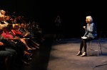 Freelance painter Lucretia Torva of Phoenix Art Group tells a story at the monthly Arizona Storytellers event at Phoenix Theatre on Wednesday, Sept. 10, 2014 of a job opportunity that made her feel welcome in Phoenix. She now calls Phoenix her home although she is not a native of Arizona.