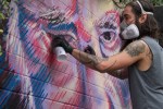 Addison Karl paints a mural of architect Frank Henry near Third and Garfield streets in downtown Phoenix on Jan. 26, 2015. Karl, who is from Phoenix but now lives in Germany, wanted to pay homage to Henry who died last July.